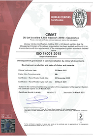 Le Système de Management de Ciments de l’Atlas est certifié conforme à ces référentiels. Des audits externes sont réalisés annuellement par des organismes accrédités: